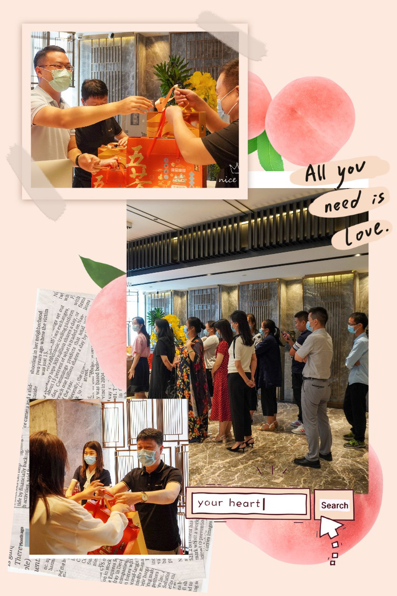 红彤彤的粽子礼盒和金灿灿的水果礼盒是乐动网页版登录入口_乐动(中国)对全体员工的浓浓心意,也让大家感受到了节日的祝福。下午5时,大家齐齐等候在前台大厅。程总作为总裁办领导发言,对近期辛苦工作的同事们表示感谢,也代表乐动网页版登录入口_乐动(中国)领导向大家送去了节日的问候。乐动网页版登录入口_乐动(中国)总裁办领导程总和项目部舒总为大家派发了端午节福利,派发现场的每个人脸上都洋溢节日特有的喜悦。